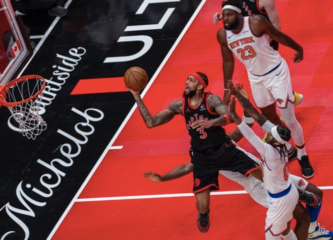 北京时间12月10日,NBA杯1/4决赛,猛龙主场对阵尼克斯。在小组赛中,猛龙取得4胜0负的成绩,这次上来也是早早进入状态,可在第二节球队突然哑火,单节只拿到13分,之后就全面陷入被动,尼克斯则牢牢占据场上主动,一直保持着两位数的领先优势。最终,猛龙101-117不敌尼克斯,惨遭4连败。