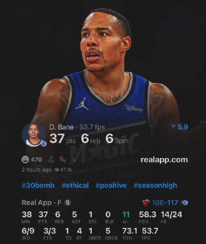 今天带领魔术击败热火的头号功臣,是赛季初被疯狂吐槽成“废柴”的贝恩。