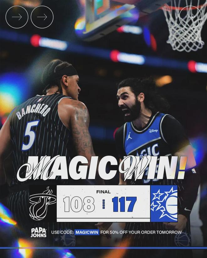 尼克斯跟猛龙的比赛还在进行当中,魔术已经在主场跟热火完成了佛罗里达州德比大战。