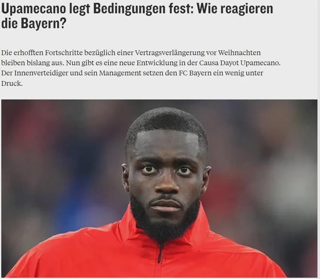 本赛季乌帕梅卡诺在孔帕尼手下发挥出色,而踢球者和体育图片报都表示法国人想要1600万欧元的年薪,并且还要加上违约金条款,不过,据悉球员方面对拜仁迟迟不愿满足他们的要求感到越发失望。