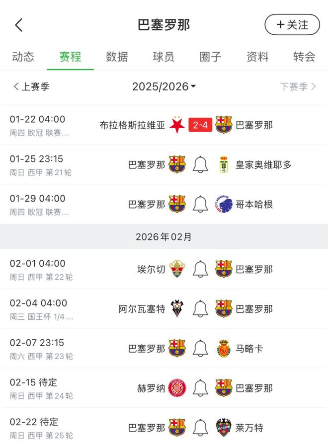巴萨未来一个月赛程