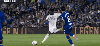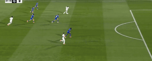 上半场补时阶段,皇马获得前场位置不错的任意球,久违的阿拉巴亲吻皮球,起脚射门,皮球的弧线相当诡异,门将注意力集中,将球扑出。