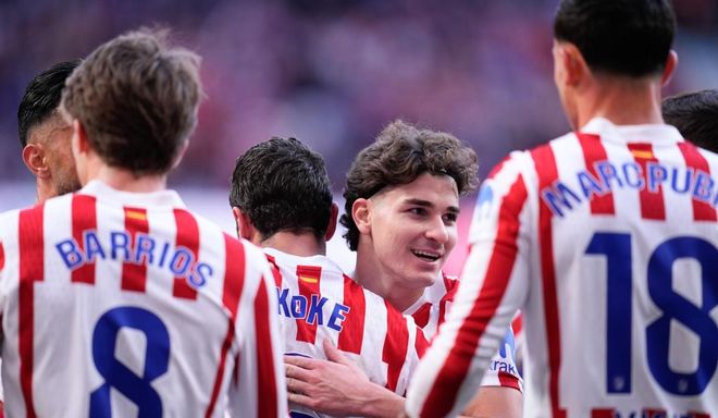 马竞排出442阵型。瑟洛特和阿尔瓦雷斯搭档双前锋。小西蒙尼、巴里奥斯、科克和尼古拉斯-冈萨雷斯组成4中场。莫利纳、普维尔、汉茨科和鲁杰里4后卫首发出战。奥布拉克担任首发门将。格列兹曼、拉斯帕多里和加拉格尔坐在替补席待命。