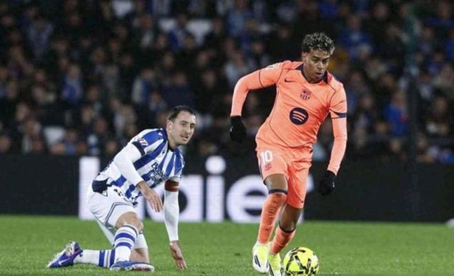 比赛伊始,阿诺埃塔的主场氛围便显得格外紧张激烈。上半场的比赛进程令人咋舌, VAR 视频助理裁判成为了主角,多次介入比赛改写了战局。皇家社会前锋奥亚萨瓦尔率先发难,尽管他的一粒进球最初因犯规在先被判无效,但他并未气馁,随后的进攻中再次破门得分,这次主裁判认定进球有效,帮助主队取得领先。然而,巴萨在上半场的遭遇更为“魔幻”。费尔明、德容以及小将亚马尔的三粒进球先后因越位或犯规在先被吹掉,紧接着亚马尔获得的点球在经过 VAR 复核后也被取消。短短半场比赛,巴萨四次将球送入网窝却无一算数,这种极为罕见的判罚尺度让巴萨球员在上半场结束时虽然比分落后,但心态上却充满了无奈与不解。