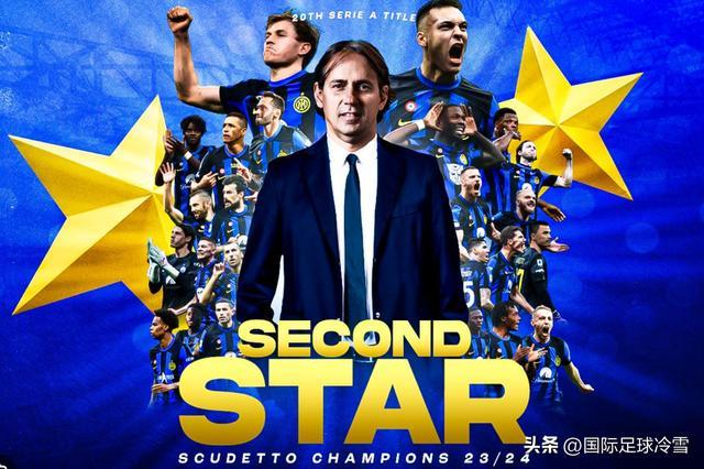 2023-24赛季,国米2分领跑积分榜,同期只丢10球,最终成功绣上第二颗星。