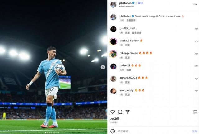 直播吧9月19日讯 曼城在本轮欧冠焦点战2-0力克那不勒斯,福登送出助攻。