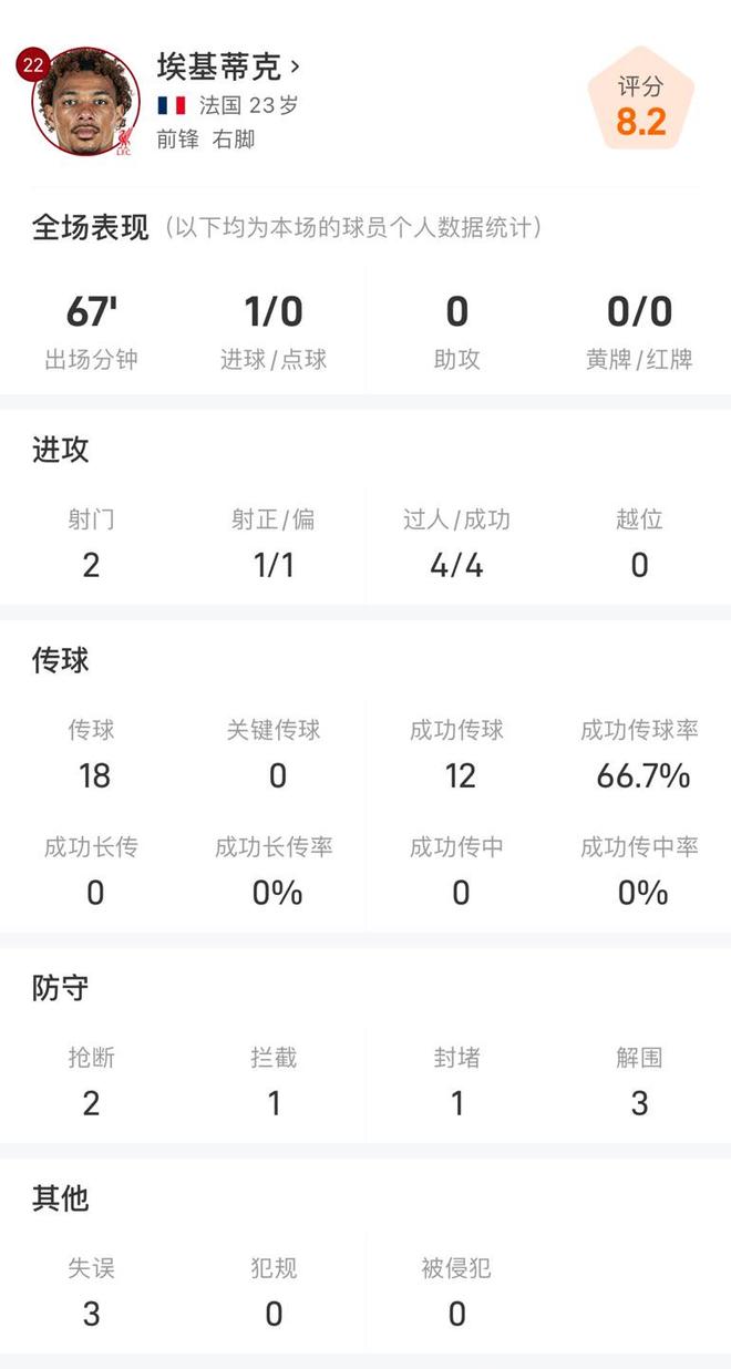 埃基蒂克本场数据:
