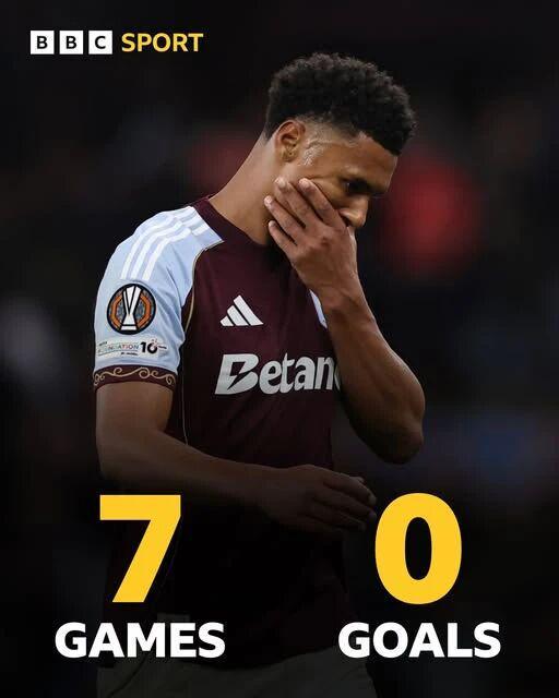 欧联杯联赛阶段第1轮比赛,阿斯顿维拉1-0战胜博洛尼亚。此役,维拉前锋沃特金斯替补出场32分钟,他在比赛中错失一粒点球,差点成为球队的罪人。据统计,沃特金斯本赛季踢了7场比赛,累计出场时间达到了498分钟,但他的数据表依旧显示0球-助攻。