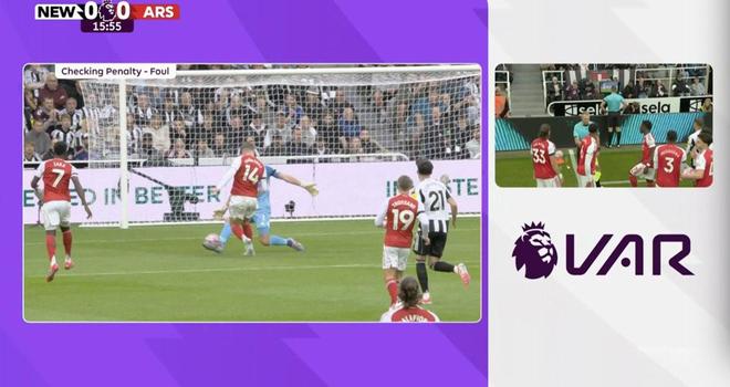 比赛第16分钟,阿森纳前锋哲凯赖什突入禁区与纽卡斯尔联门将波普接触后倒地,主裁判贾里德-吉列第一时间判罚点球,在回看VAR后取消点球判罚。