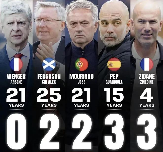 排名第一的教练相信大家都猜到了,他就是“红色帝国”的缔造者弗格森爵士。不知不觉间,弗格森已经离开教练席12年了,但曼联却至今没有走出弗格森退休的阴霾。不知道红魔球迷期待的球队重返巅峰,究竟哪一天才会到来。