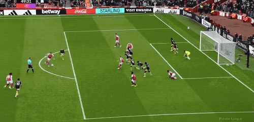 第38分钟,萨卡策动进攻,苏维门迪的直塞恰到好处,埃泽的怒射被扑出,赖斯补射,枪手取得领先。