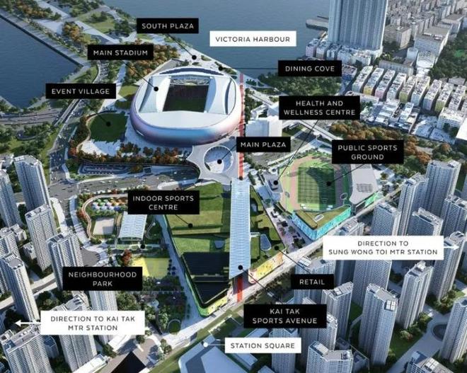 整个启德体育园占地28公顷,包括:一座近5万座的主体育场(本次传奇赛场地)、一座可容纳1万人的室内体育馆、公共运动场以及健康与康体中心。