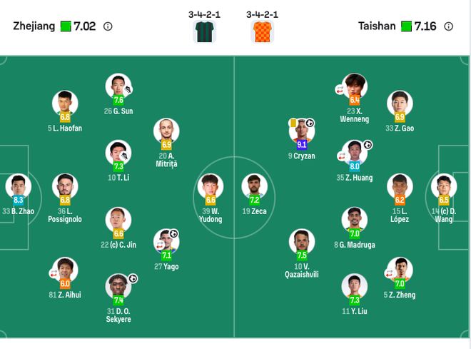 中场:8-马德鲁加(F)、9-克雷桑(F)、35-黄政宇(74’22-李源一);