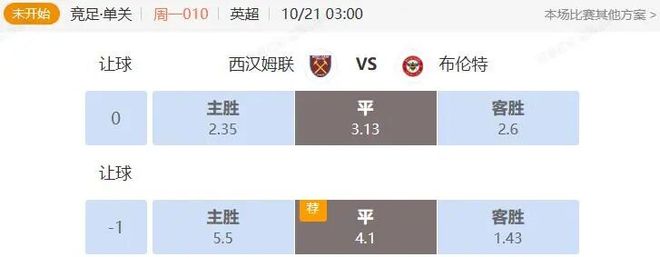 数据方面初始给到五五开的局面,后市信心没有太大变化,双方联赛表现都不太理想,近期交锋也各有胜负,市场并没有给到任何一方支持。不过,西汉姆联已深陷降级区,球队首要目标是尽快摆脱降级区,主场机会必定不会放过,本场比赛更看好主队平或一球小胜。