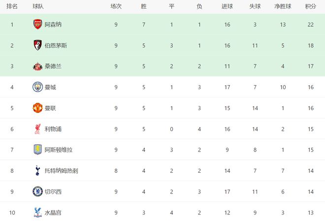 英超悲喜夜:阿森纳10领跑曼城01翻车掉第四黑马20飙升第二