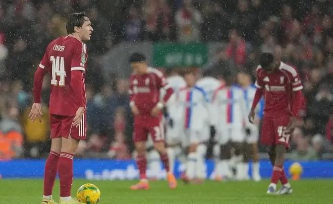 2025-26赛季英格兰联赛杯第四轮展开角逐,英超冠军利物浦主场对阵水晶宫。全场比赛战罢,主队利物浦输个彻底,十人利物浦0-3完败水晶宫,惨遭淘汰出局。
