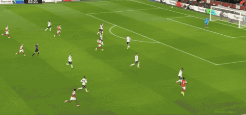 第76分钟,梅里诺送出妙传,特罗萨德无私横敲,埃泽停球摆脱一气呵成,随后兜射命中,大演帽子戏法,阿森纳锁定胜局,4-1!