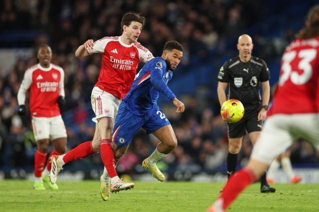 13’赖斯大力手抛球被解围后,埃泽传至右侧空当,萨卡低射被罗伯特·桑切斯用腿挡出。