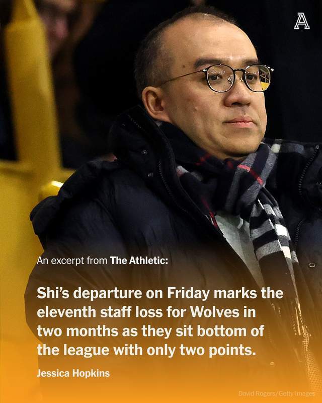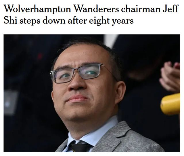2025-26赛季英超,狼队16战0胜2平14负,仅拿到2分,排名倒数第1,降级成为定局。12月20日,狼队官方宣布,俱乐部主席施瑜正式辞职,施佳瀛(Nathan Shi)出任临时执行主席。