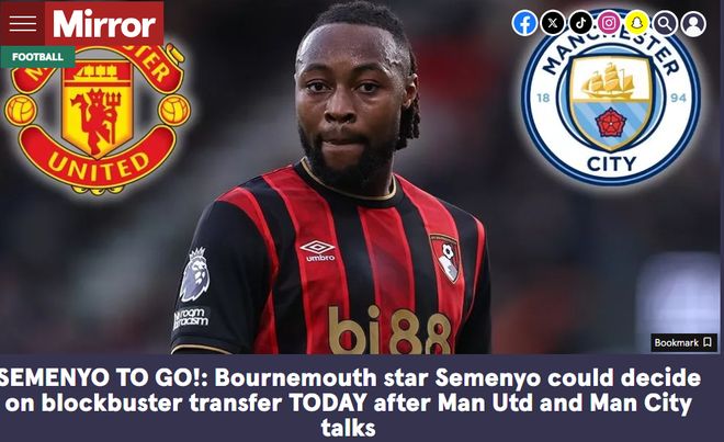北京时间12月23日,据英国媒体《镜报》透露,伯恩茅斯当家射手塞梅尼奥最快可能在今天将敲定自己的下一站。目前,曼城、曼联领先于其他俱乐部。作为英超冬窗最炙手可热的前锋,塞梅尼奥受到了英超多家豪门的追逐,但他最终选择了曼彻斯特,至于红还是蓝,目前结果尚未出炉。