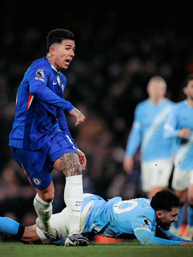 不过,除了最后时刻的进球,恩佐在本场比赛的意义显然不只于此:只从数据层面来看,在进攻端,他招牌的传球并没有打出来,全场比赛的传球成功率仅为76.2%,但他的激进能让切尔西踢得更为积极主动,全场比赛他送出了两次关键传球,5次长传2次成功,大量的向前传球让切尔西能时刻保持提速状态。而在防守端,恩佐贡献了3次解围1次拦截和7次成功抢断,无论是保卫自家禁区,还是身体力行压迫曼城的中场,恩佐都打出了现象级的水准,那粒最后时刻的进球,更像是对切尔西中场一整场表现的延迟奖励。