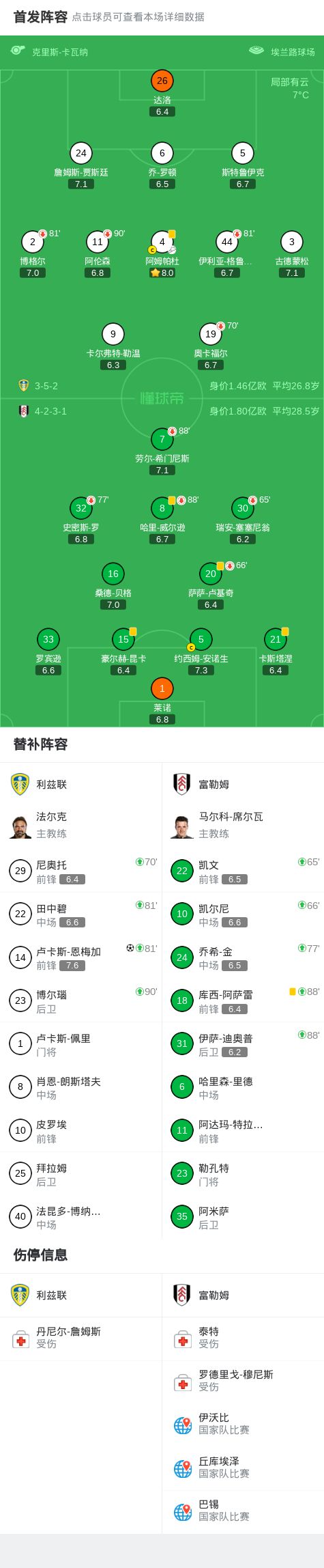 第90+1分钟,恩梅加倒地情况下扫射破门,利兹联1-0富勒姆