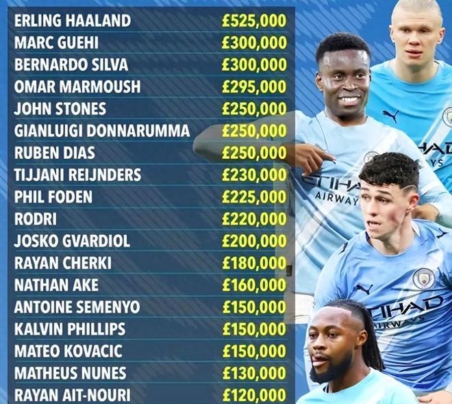 格伊与曼城签下一份为期五年半的合同,周薪达到惊人的30万英镑。这一数字不仅与贝尔纳多·席尔瓦持平,还略高于马尔穆什(29.5万英镑/周)。更令人意外的是,像斯通斯、鲁本·迪亚斯、多纳鲁马等球队核心,周薪均在25万英镑左右;而福登、罗德里、格瓦迪奥尔等当红球星,薪资也排在格伊之后。