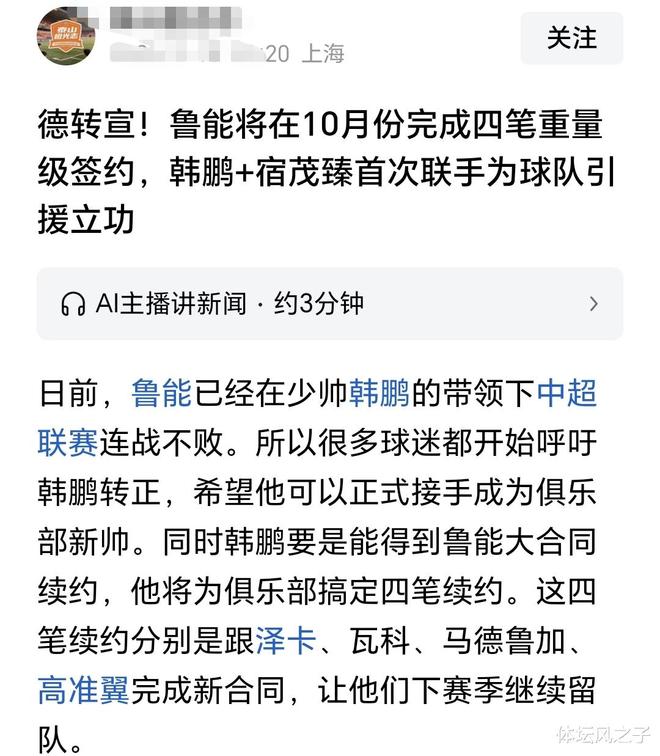 如今中超联赛还在火热进行,其中山东泰山在经过了上半程的动荡之后,在少帅韩鹏上任之后,已经是快速带领球队重回正轨了,而泰山队也已经是展现出了强劲的竞争力,而在韩鹏带队有持续出色发挥的情况下,外界要求韩鹏转正的呼声已经是越来越高了,只要韩鹏能够保持这样的表现,下赛季大概率会迎来转正的。