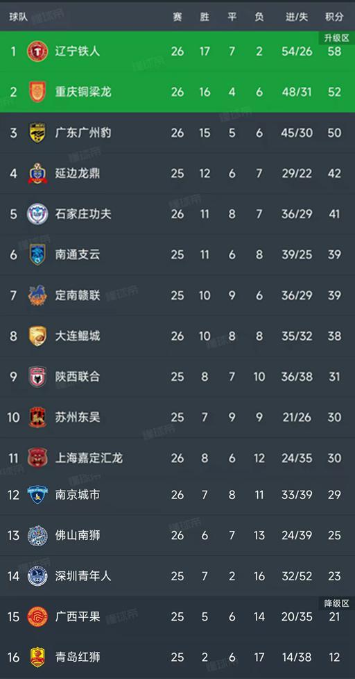 上赛季的广州元素,广州队获得第三名,最终因为经济问题解散。这个赛季广州豹是广州足球的代表之一,联赛比到现在,有冲超的希望,就要坚持,广州足球需要回到中超的行列。南京城市以29分排在第12名,领先降级区8分,理论上还没有保级上岸。上海嘉定汇龙2-1战胜大连鲲城,以30分排在第11名,基本上岸!