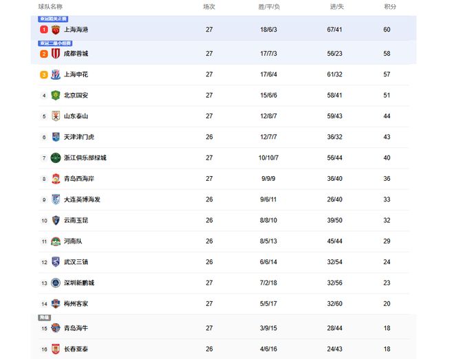 随着泰山22,国安12,中超积分:3队成降级热门,1队退出争冠