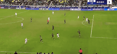 第8分钟,曹永竞再次将球送入禁区,古加巧妙一漏,法比奥的爆射放了高射炮。