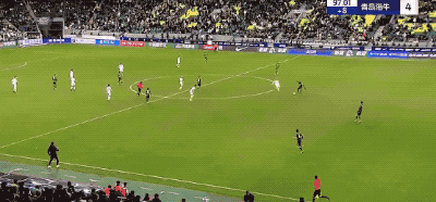 第4分钟,接到何宇鹏的直传,曹永竞第一时间传中,古加跟进的射门打在防守球员身上,稍稍偏出,古加向曹永竞竖起大拇指。
