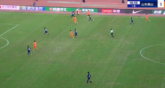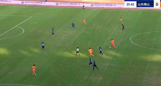 第45+4分钟,泽卡右路拿球横敲,刘洋包抄到位将球送进大门,山东泰山2-0领先。