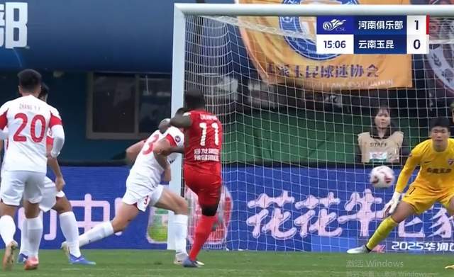 第15分钟,王上源扯动到左边路反复组织试探,最终带球内切至大禁区前横敲给阿奇姆彭,阿奇突施冷箭一个远射攻破对方球门!1-0,河南一球领先。