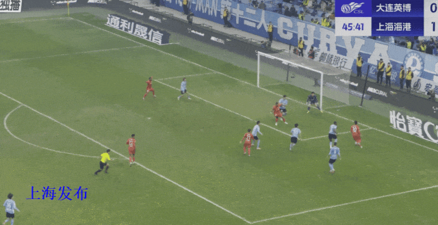 第45分钟,海港前场断球后制造威胁,皮球最终被没收