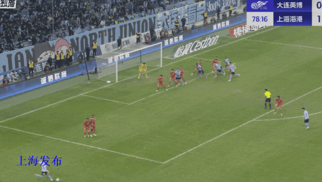 第78分钟,拉布亚德任意球直飞远角,颜骏凌反应集中将球挡出