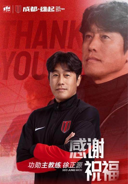 经友好协商,成都蓉城足球俱乐部与徐正源先生达成一致,决定不再续约,徐正源先生将不再担任成都蓉城足球俱乐部一线队主教练职务。在此,俱乐部全体成员谨向徐正源先生及其教练团队致以最诚挚的谢意。